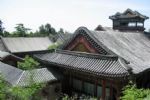 一、屋頂 屋頂最上方為一條橫向的屋脊,稱為正脊. 較大的殿宇的正脊兩端有鴟吻(鴟尾、龍吻). 垂(斜)脊的外端(檐角一端)排列著一系列脊飾,最外面是若干個小動物稱為蹲獸,最后面龍頭狀的,稱為垂獸。 中國古代建筑的屋頂可分為廡殿式頂、歇山式頂、懸山式頂、硬山式頂、攢尖式頂和錄頂等形式。按屋檐的層數分,廡殿頂、歇山頂和攢尖頂又分為單檐和重檐兩種。歇山式、懸山式和硬山式又分出一種沒有正脊的卷棚式屋頂。此外,歇山式還分出一種極少見的十字歇山頂。 1、廡殿頂 廡殿頂 又稱四阿頂,五脊四坡式,又叫五脊頂。前后兩坡相交處是正脊,左右兩坡有四條垂脊,分別交于正脊的一端。廡殿頂分為單檐和重檐兩種,重檐廡殿頂,是在廡殿頂之下,又有短檐,四角各有一條短垂脊,共九脊,F存的古建筑物中,如太和殿和曲阜孔廟大成殿。重檐廡殿頂是清代所有殿頂中最高等級,只有皇帝和孔子的殿堂可以使用。 ▲圖為重檐廡殿頂宮殿建筑 2、歇山頂 歇山頂又稱九脊頂,除一條正脊、四條垂脊外,還有四條戧脊。正脊的前后兩坡是整坡,左右兩坡是半坡。歇山頂主要分為單檐和重檐兩種,重檐歇山頂的第二檐與廡殿頂的第二檐基本相同。在等級上僅